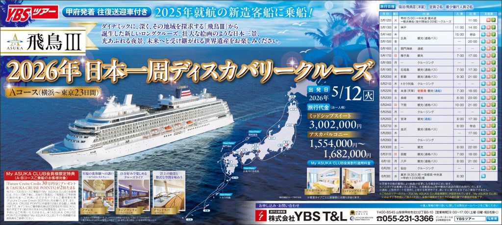 【1/12新聞掲載】飛鳥Ⅲ 2026年日本一周ディスカバリークルーズのご案内です。