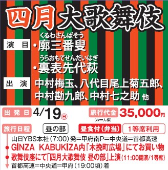 =歌舞伎座にて「四月大歌舞伎 昼の部」上演(11:00開演/1等席)