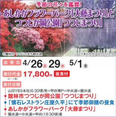 足利フラワーパーク「大藤まつり」とつつじが岡公園「つつじまつり」