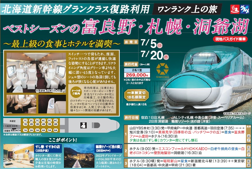 北海道グランクラス ベストシーズンの富良野・札幌・洞爺湖