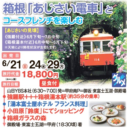 箱根あじさい電車とコースフレンチを楽しむ