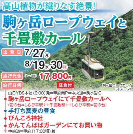 | 1 | 山日YBS本社前(6:00頃)=甲府南P=中央道・駒ヶ岳IC =